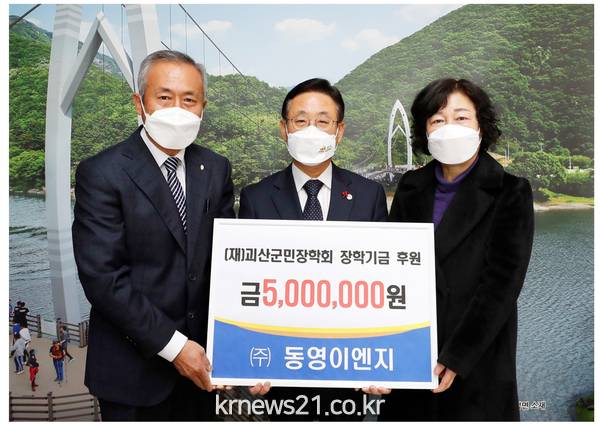 ▲ 사진=괴산군충북 괴산군은 10일 ㈜동영이엔지(대표 김병준)에서 괴산군민장학회에 장학기금 500만원을 기탁했다고 밝혔다.