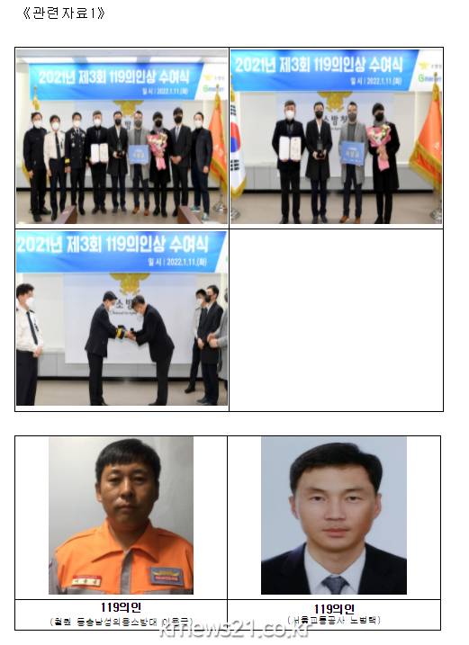 이용금씨는 철원 동송남성의용소방대 보급반장이며, 노범택씨는 서울교통공사에 재직 중이다.