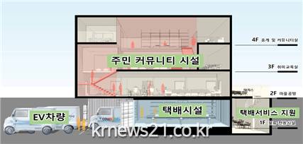 이에 시는 아파트 단지 등 집 근처의 택배 물품을 집결하는 소규모 물류거점인 ‘우리동네 공동배송센터’를 조성하고, 청년 배송인력을 채용한다. 각 택배사는 각 가정까지 택배를 배달할 필요 없이 공동배송지까지만 배송하고 가면, 청년 배송인력은 전기카트 등 친환경 수단을 활용해 가가호호 배달에 나선다.
