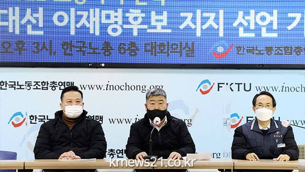 한국노총은 8일 서울 여의도 한국노총 대회의실에서 기자회견을 열고 "더불어민주당 이재명·국민의힘 윤석열·국민의당 안철수·정의당 심상정 후보를 대상으로 한 선호투표에서 이 후보가 과반을 넘게 득표해 1위를 차지했다"며 "이러한 조직적 결의를 바탕으로 이 후보를 공식 지지한다"고 밝혔다.