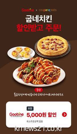 굽네는 고객들의 성원에 보답하고자 오는 13일까지 배달앱 ‘쿠팡이츠’에서 방문 포장 주문 시 5천원 할인 프로모션을 진행한다. 이번 프로모션은 치킨 업계 최초로 쿠팡이츠에서 진행하는 ‘포장 페스티벌’의 일환으로, 방문 포장 주문 시 굽네 전 제품에 5천원 할인이 적용된다.