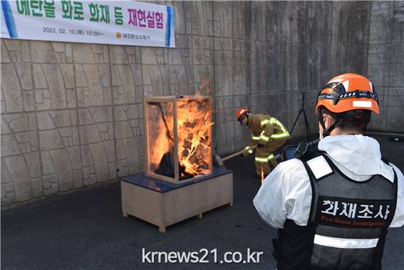 재현실험은 밀폐된 실험 세트 안에 에탄올 화로를 점화시킨 상태에서 추가 에탄올 연료를 주입하여 유증에 의한 착화 및 화재 확산을 확인하고, 텐트 내부에서 휴대용 가스난로 사용 및 숯 피움으로 인한 유해가스(일산화탄소) 농도증가 수치를 복합가스 측정기로 분석하는 방식으로 진행됐다.