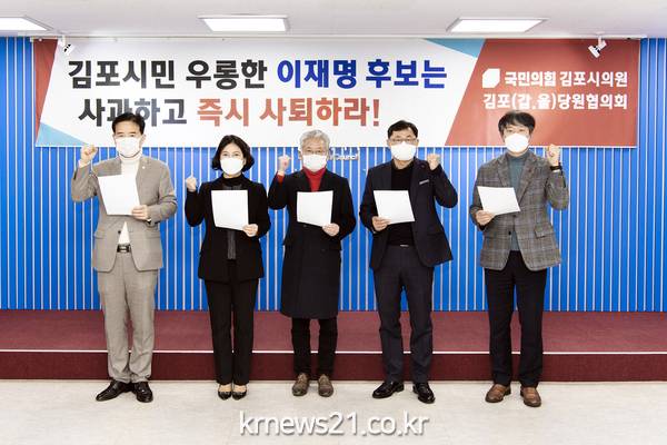 이에 국민의힘 김포시 갑. 을 당원협의회는 김포시민의 이름으로 규탄한다. 김포시에 혼란을 일으키고 이러한 사태를 촉발시킨 이재명 후보는 김포시민께 사과하고 즉시 사퇴하라!!