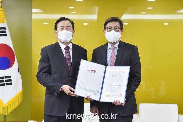 ▲ 사진=부산광역시부산시(시장 박형준)는 부산시설공단 신임 이사장에 이해성 전 조폐공사 사장을 2월 16일 자로 임명하고, 오늘 오전 임명장을 수여했다고 밝혔다.