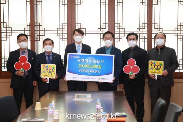 HRS silicone은 연구개발, 기술성취, 책임생산으로 고객과 함께 성장하는 세계적 기업으로 성장한다는 경영이념으로 실리콘 산업발전에 중추적 역할을 하는 실리콘 전문기업이며, 2021년에도 2,000만원을 기부하는 등 꾸준한 나눔을 실천하고 있다.