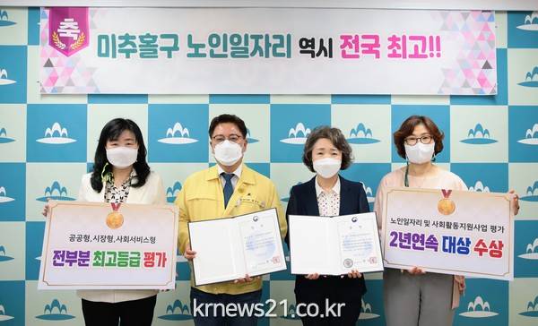 인천 미추홀구(구청장 김정식)가 2021년 군·구 행정실적 종합평가 노인일자리 및 사회활동 지원사업 분야에서 1위로 선정됐다.