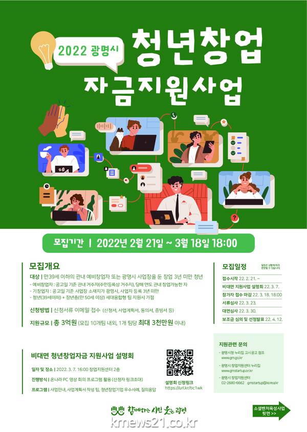 ▲ 사진=광명시광명시(시장 박승원)는 지역 청년 창업자 육성과 소셜벤처 신규 발굴을 위해 청년 창업자금 지원 사업과 소셜벤처 육성 사업을 추진한다고 22일 밝혔다.