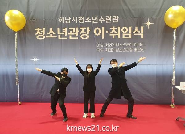 이날 행사는 김상호 시장, 방미숙 하남시의장, 청소년 대표 등 50여 명이 참석한 가운데 제2대 김어진 관장의 이임과 제3대 배은진 관장의 취임으로 진행됐다.