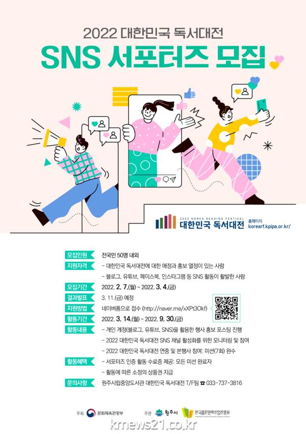 ▲ 사진=원주시원주시는 3월 4일까지「2022 대한민국 독서대전」 SNS 서포터즈를 모집한다.