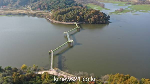 ▲ 사진=서천군서천군 마산면, 시초면에 걸친 봉선저수지에 ‘물버들 생태탐방교’가 조성되며 서천 동부 지역발전을 견인할 새로운 랜드마크로 주목받고 있다.