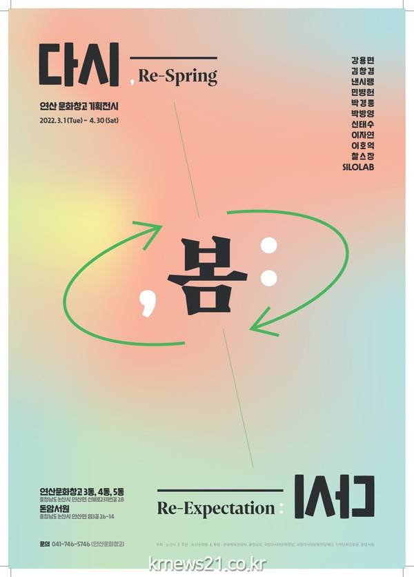 시는 연산문화창고 개관 기념으로 오는 3월 1일부터 4월 30일까지 ‘다시 봄, 다시∶봄’을 주제로 세계문화유산으로 이름을 올린 돈암서원과 연계하여 전시회를 개최할 예정이다.