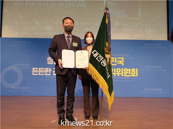 ▲ 사진=대전광역시대전시는 25일 국민권익위원회 주관으로 열린‘제10회 국민권익의 날’ 기념행사에서 ‘온라인 국민참여포털 국민신문고 운영 우수기관’으로 선정돼 국민권익위원장 표창을 수상했다고 밝혔다.