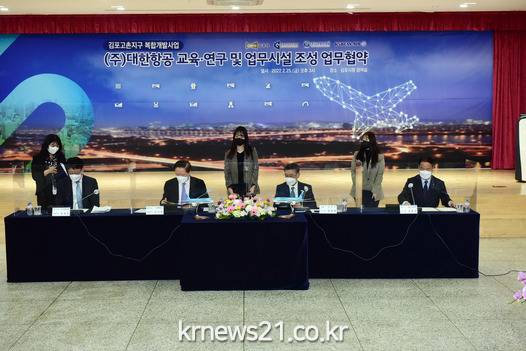 김포시, 김포도시관리공사, ㈜고촌복합개발, ㈜대한항공은 25일 고촌지구 복합개발 산업시설 용지 내 대한항공의 교육․연구 및 업무시설 조성을 위한 양해각서(MOU)를 체결했다.