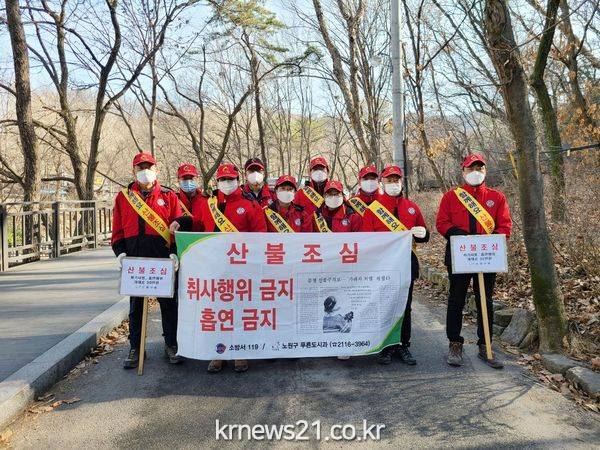 구에 따르면 노원구 산림면적은 국유림, 공유림, 사유림까지 모두 합쳐 총 15,455ha이며, 최근 5년간 산불 발생은 8회, 이로 인한 피해면적은 2.5ha이다. 연 1회 이상 산불이 발생하고 있는 만큼 봄철 산불에 각별한 주의가 필요하다고 당부했다.