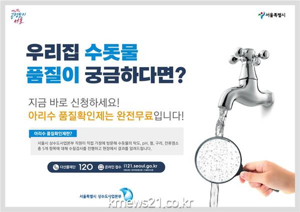 아리수 품질확인제는 다산콜재단(120번)이나 관할 수도사업소, 또는 서울시 상수도사업본부 홈페이지(http://arisu.seoul.go.kr)에서 신청할 수 있다. 검사 비용은 무료이며 결과는 현장에서 바로 안내한다.