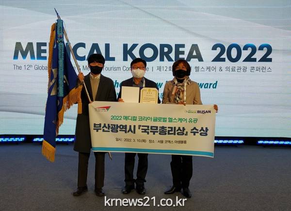 ▲ 사진=부산광역시부산시(시장 박형준)는 지난 10일 열린 보건복지부 주관 ‘2022 메디컬 코리아 글로벌 헬스케어 유공 시상식’에서 국무총리 표창을 받았다고 밝혔다.