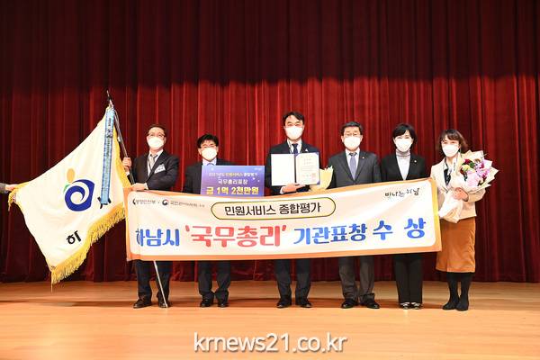 이날 수상은 지난 1월 행정안전부와 국민권익위원회가 실시한 ‘2021년 민원서비스 종합평가’에서 하남시가 국무총리 표창(‘가등급’) 기관으로 선정된 데 따른 것이다.