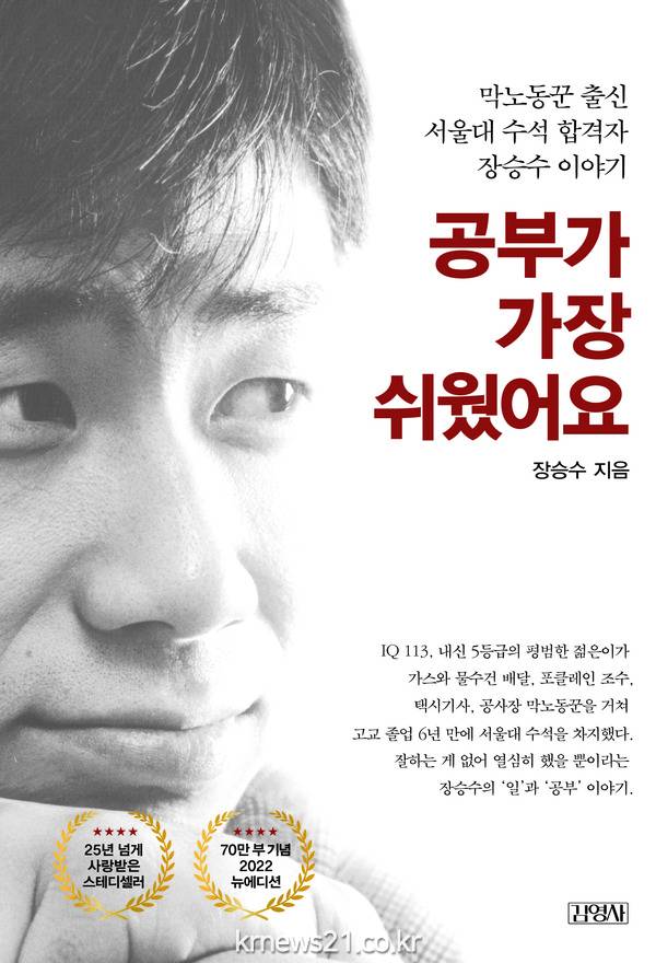 싸움꾼 고교생이 공사장 막노동꾼에서 서울대 수석 합격자가 되기까지. 삶의 역전을 이뤄낸 장승수의 ‘일’과 ‘공부’ 이야기 《공부가 가장 쉬웠어요》는 1996년 초판 출간 즉시 전 언론과 대중의 주목을 받아 베스트셀러가 되었다. 그리고 25년이 지난 지금까지 70만 부 이상 판매되며 많은 독자에게 사랑을 받아 공부 동기부여의 전설이자 공부법의 고전으로 자리 잡았다. 이는 단지 이 책에 장승수만의 서울대 합격비결이 담겼기 때문만은 아니다. 일과 공부, 삶에 대한 그의 끝없는 도전은 공부의 이유와 목적뿐 아니라 우리의 삶 그 자체를 돌아보게 한다.