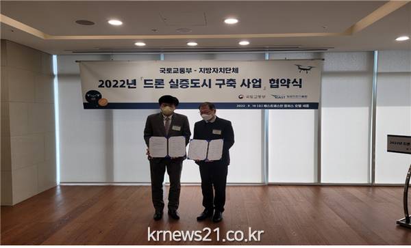 인천광역시는 2022년도 「드론 실증도시 구축사업」과 「드론 규제 샌드박스 사업」이 정부 공모에 선정돼, 16일 국토교통부와 세종시 베스트웨스턴 플러스 호텔에서 협약을 체결했다고 밝혔다. 이 중 「드론 실증도시 구축사업」에는 9개 자치단체가 선정됐으며, 광역시‧도 중에서는 유일하게 인천이 선정됐다.