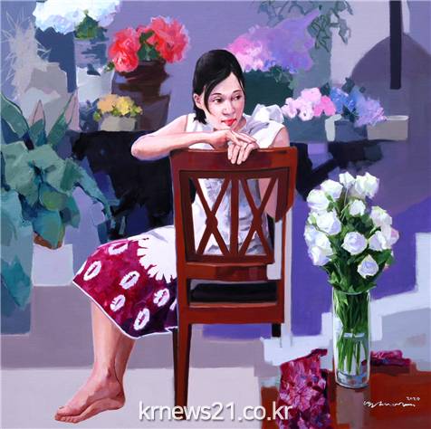 반면, 박태영 작가는 회화의 유채(油彩)기법과 재료로 꽃과 여인, 풍경과 정물 등 일상적인 대상을 화려한 색채로 사실적으로 그리며 화면을 재구성하는 작가이다.