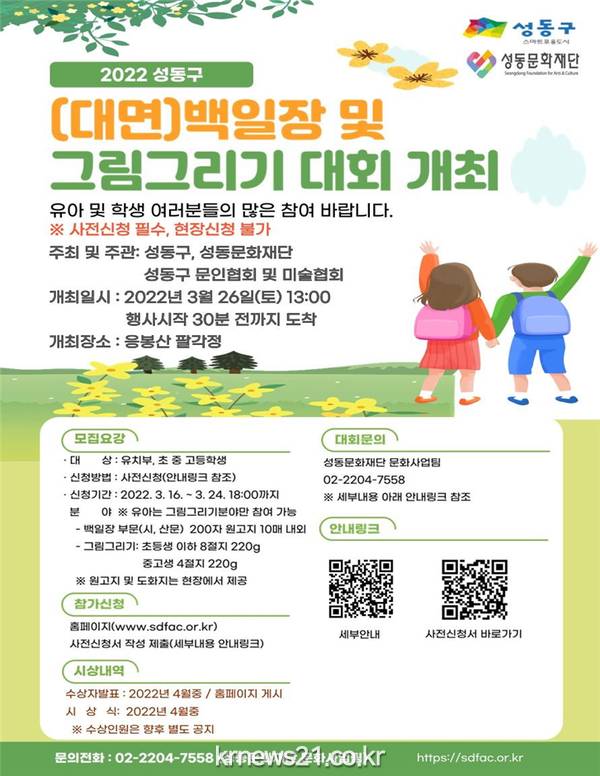 ▲ 사진=성동문화재단 제공재단법인 성동문화재단(이사장 정원오)은 오는 3월 26일 하이브리드(대면․비대면 혼합) 방식으로 2022년 성동구 백일장 및 그림그리기 대회를 개최한다.
