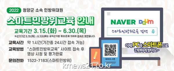 ▲ 사진=청양군청양군(군수 김돈곤)이 코로나19 상황 때문에 올해도 민방위대원 1,117명에 대해 온라인교육을 진행한다고 29일 밝혔다.