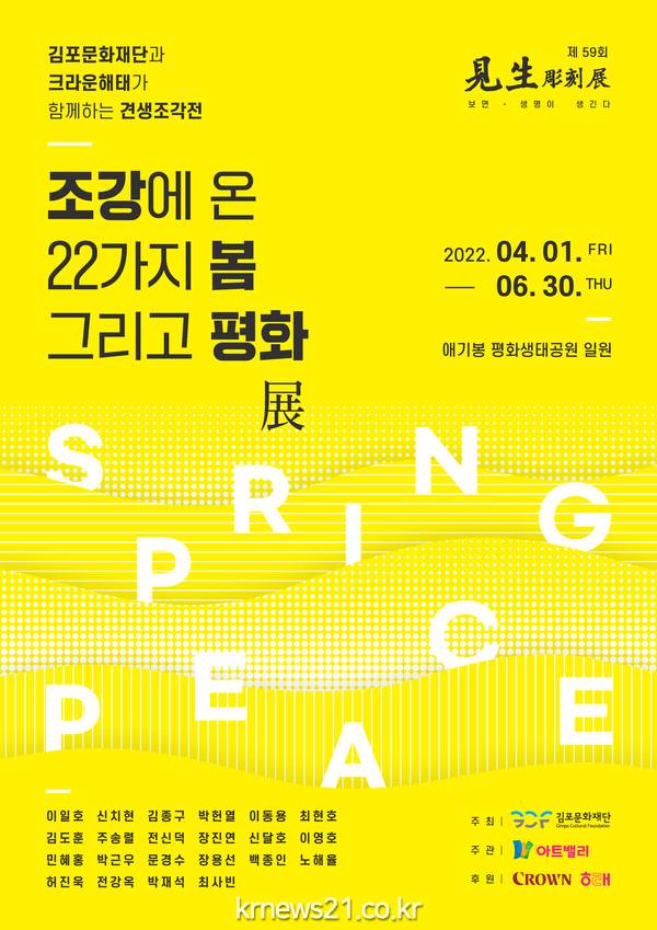 ▲ 사진=김포문화재단 제공(재)김포문화재단이 크라운해태와 함께 4월 1일부터 애기봉 평화생태공원 일원에서 <견생조각전 ‘조강에 온 22가지 봄 그리고 평화展’>을 선보인다고 밝혔다.