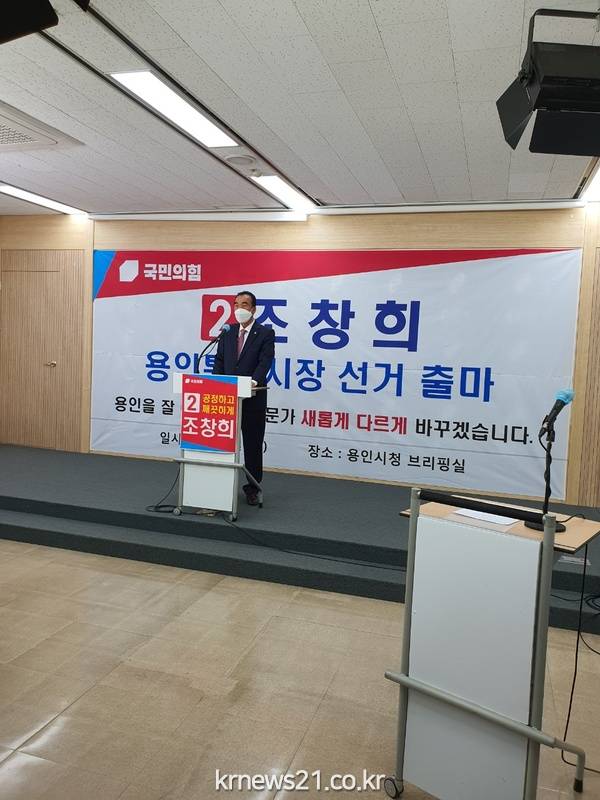 31일 14시 용인시청 브리핑룸에서 출마선언 기자회견을 열고,용인을 잘 알고,시민의 불편함을 잘아는 사람.즉 용인의 산적한 현안을 해결할,지역일꾼인 조창희후보가 필요한 시기라고 강조하면서 출마배경을 밝혔다.