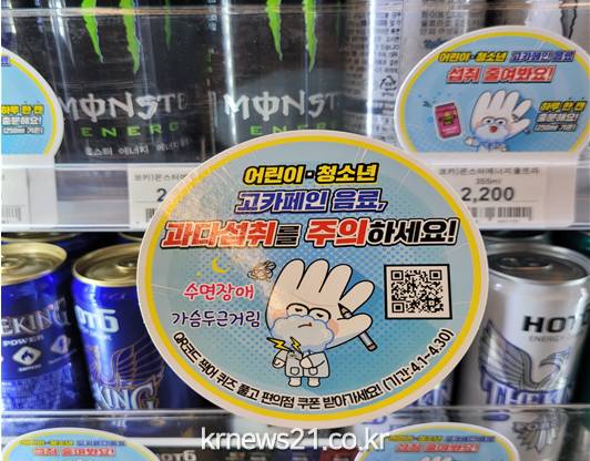 ▲ 사진=식품의약품안전처식품의약품안전처(처장 김강립)는 청소년의 고카페인 음료 과다섭취를 예방하기 위해 편의점 업계와 함께 음료 진열대에 ‘섭취 주의’ 문구를 표시하는 시범사업과 고카페인 부작용에 대한 올바른 정보를 제공하는 홍보를 실시한다.