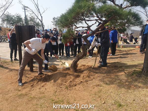 가족 단위로 참석한 회원들은 직접 나무를 심고 본인이 심은 나무에 수목 표찰을 만드는 등 묘목심기 행사에 의미를 더했다. 이날 행사에 식재된 수종은 왕벚나무 500주와 튤립 2,500송이다.