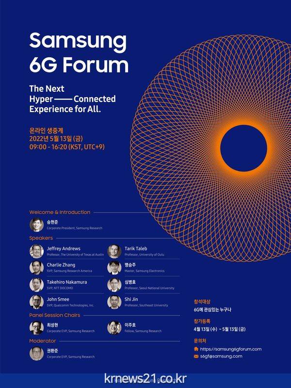 제1회 ‘삼성 6G 포럼’은 ‘새로운 차원의 초연결 경험(The Next Hyper-Connected Experience for All.) 시대 구현’을 주제로 온라인으로 개최된다.