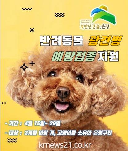 이번 예방접종은 은평구 수의사회와 협력해 관내 동물병원 대부분 참여한다. 참여 동물병원은 구 홈페이지 공지사항에서 확인할 수 있다.