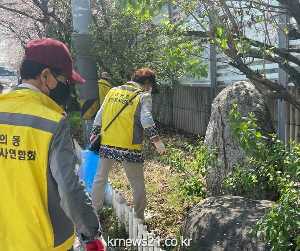 ▲ 사진=영등포구영등포구(구청장 채현일) 여의동 주민센터는 관내 직능단체 회원 및 지역 주민과 함께 봄꽃길 개방기간인 4월 11일부터 15일까지 동여의도 봄꽃길을 걸으며 쓰레기를 줍는 스프링깅 활동을 펼친다고 밝혔다.