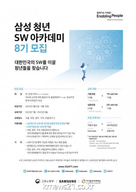 ▲ 사진=삼성삼성은 ‘삼성청년SW아카데미(Samsung Software Academy For Youth, SSAFY)’ 8기 교육생을 5월 2일부터 16일까지 모집한다고 18일 밝혔다.