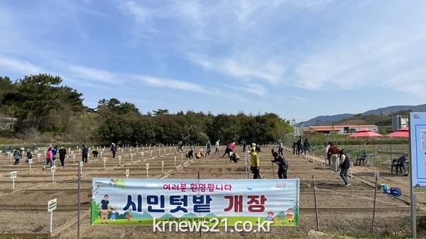 ▲ 사진=진주시진주시는 16일 시민들의 생산적 여가활동과 혁신도시 이전공공기관 임직원 가족들이 지역주민과 공동체를 형성할 수 있도록 하기 위한 특수시책으로 추진 중인 ‘시민텃밭’을 성황리에 개장했다. 이날 시민텃밭을 분양받은 경작자들은 본인의 텃밭 위치를 확인하고 텃밭운영에 필요한 준수사항과 작물재배 관리요령 등을 교육받았다. 또한 한국농업경인진주시연합회(회장 임호식)는 이날 개장식에 참석한 경작자들에게 상추, 청경채, 쑥갓 등 종자 무료 나눔행사를 진행했다.