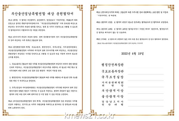 ▲ 사진=행정안전부 / 분권협약서 전문정부는 4월 18일(월), 전국 최초의 특별지방자치단체(이하 ‘특별지자체’)로 ‘부산울산경남특별연합(이하 ‘특별연합’)’이 설치되어 4월 19일(화),「부울경 특별지자체 지원을 위한 협약식」을 개최한다고 밝혔다.