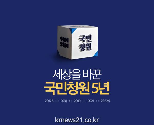 문재인 정부가 도입한 국민청원 게시판에 5년간 111만 건의 글이 올라왔고, 5억 1,600만 명이 방문했다. 또한 20만 명 이상 동의해 청와대나 정부 관계자가 답변한 청원은 285건이다.