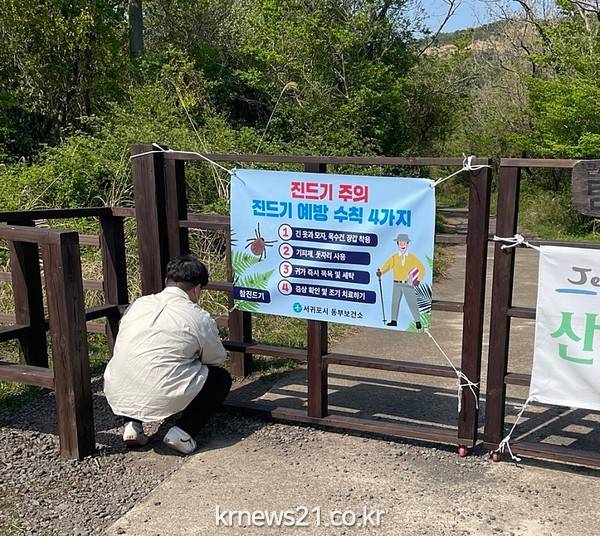 한편, 서귀포시동부보건소는 머체왓숲길, 자배오름 입구, 올레 1코스 안내소 등 진드기 서식지 12개소에 설치된 진드기 기피제 분사기를 주기적으로 점검하고 지역주민을 위한 휴대용 기피제 및 홍보물을 배부하여 진드기매개감염병 예방을 집중 홍보할 예정이다.