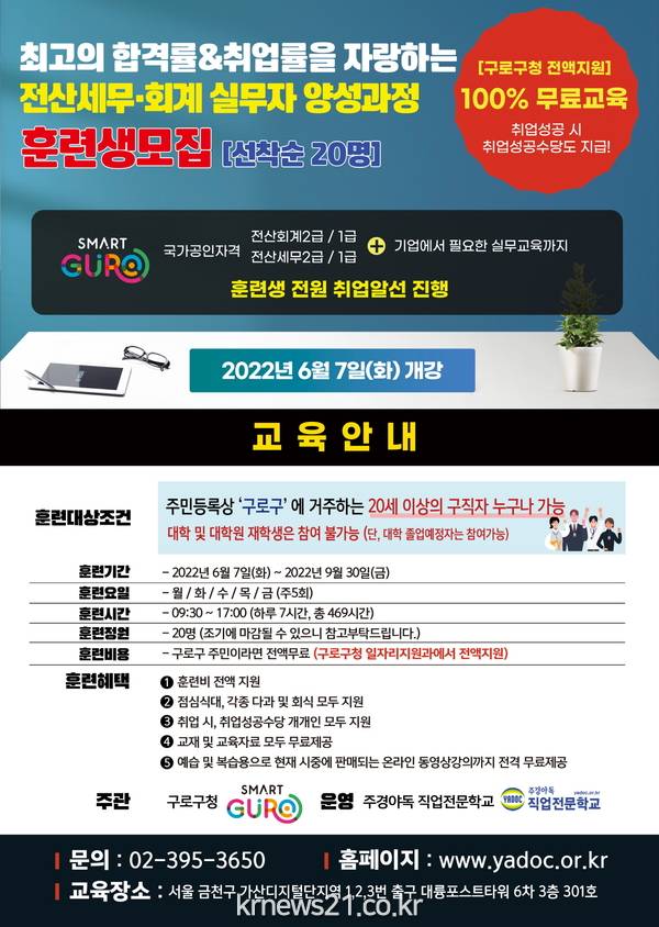 ▲ 사진=구로구구로구(구청장 이성)가 5월 31일까지 ‘전산세무·회계 실무자 양성과정’ 교육생을 모집한다.