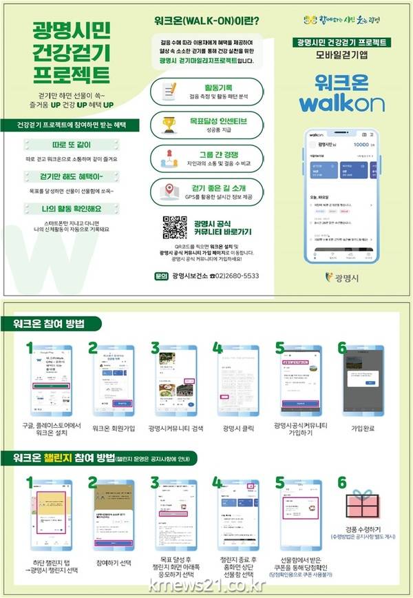 ▲ 사진=광명시광명시는 시민들의 코로나19로부터의 일상 회복과 걷기 생활화를 독려하기 위해 5월 2일부터 29일까지 2022년 두 번째 워크온 챌린지를 운영한다.