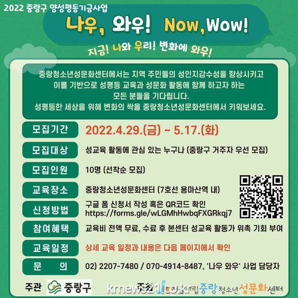 ▲ 사진=중랑구중랑구가 양성평등기금 지원사업의 일환으로 주민 대상 특별프로그램 <지금! 나와 우리! 변화에 와우!>을 진행한다.