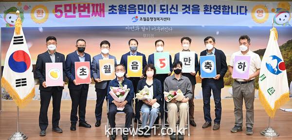 초월읍은 10일 초월읍 행정복지센터에서 구정서 읍장을 비롯해 이장협의회장, 주민자치위원장, 새마을지도자협의회장, 부녀회장, 초월농협조합장 등 지역 단체장들이 참석한 가운데 인구 5만번째 주인공을 축하하는 자리를 가졌다.