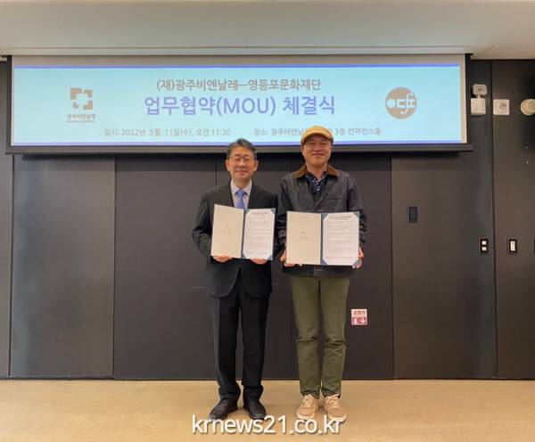 광주비엔날레재단 제문헌 3층 컨퍼런스홀에서 진행된 협약식에는 영등포문화재단 강원재 대표이사와 광주비엔날레재단 박양우 대표이사가 참석해 협약을 맺었다.