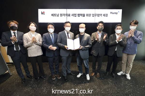 ▲ 사진=KTKT(대표이사 구현모, www.kt.com)가 헬스케어 서비스 기업 휴레이포지티브(대표 최두아)와 베트남 원격의료 사업 추진을 위한 업무협약(MOU)을 맺었다고 12일 밝혔다. 이로써 KT는 베트남 디지털 헬스케어 시장 진출을 위한 전략적 파트너를 확보했다.