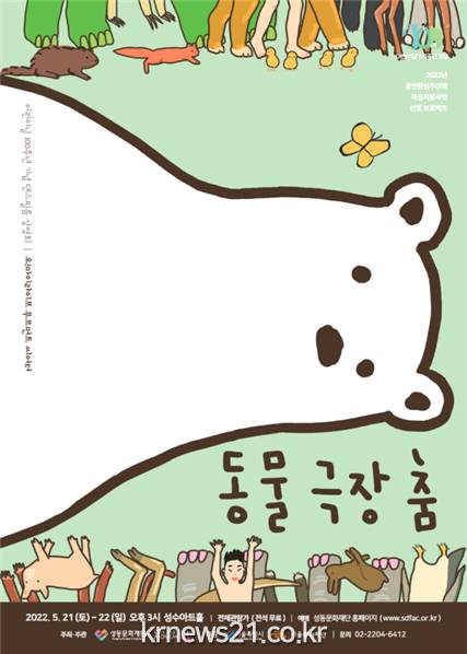 ▲ 사진=성동문화재단 제공재단법인 성동문화재단(대표이사 윤광식)은 어린이날 100주년을 기념하여 성수아트홀에서어린이․청소년을 위한‘동물극장 춤’댄스필름 상영회를 5월 21~22일 양일에 걸쳐 선보인다.