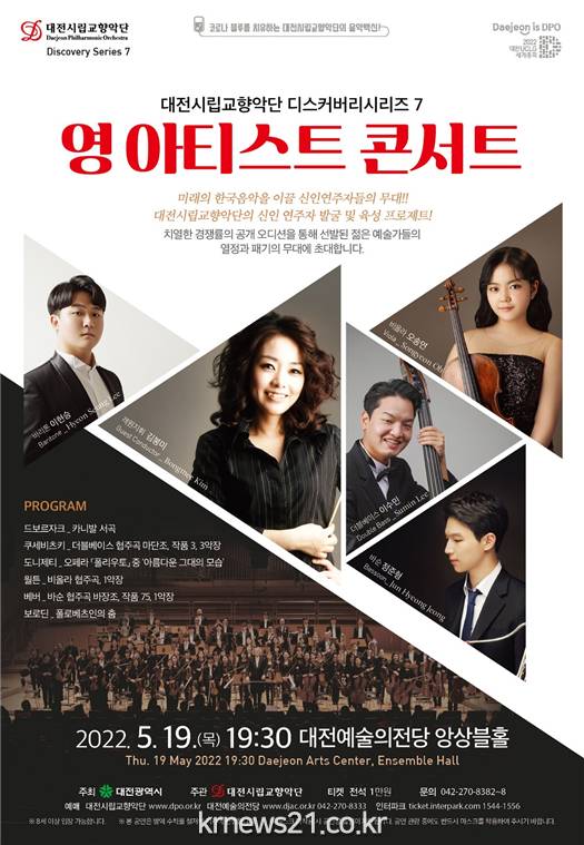 ▲ 사진=대전광역시대전시립교향악단은 오는 19일 저녁 7시 30분, 대전예술의전당 앙상블홀에서 디스커버리시리즈 7 ‘영 아티스트 콘서트’를 연주한다.
