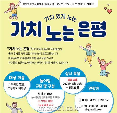 ▲ 사진=은평구은평구는 초등학생 대상 놀이서비스 바우처 ‘노는 은평, 크는 아이’ 이용자를 오는 26일까지 모집한다.