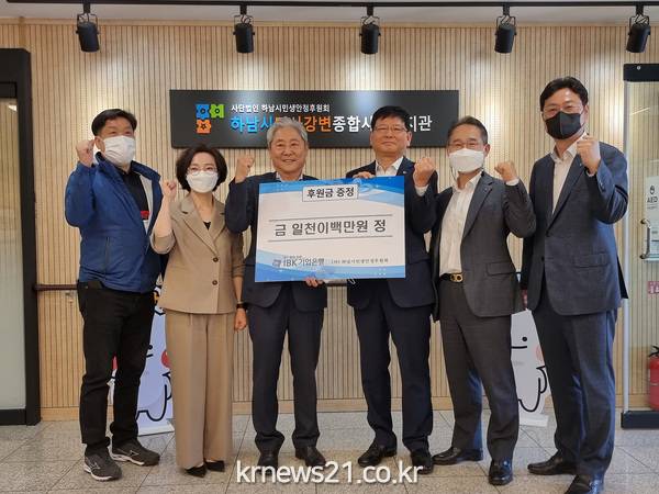 지난 9일, IBK기업은행 하남센텀지점에서 사단법인 하남시민생안정후원회에 1,200만원의 후원금을 전달했다.
