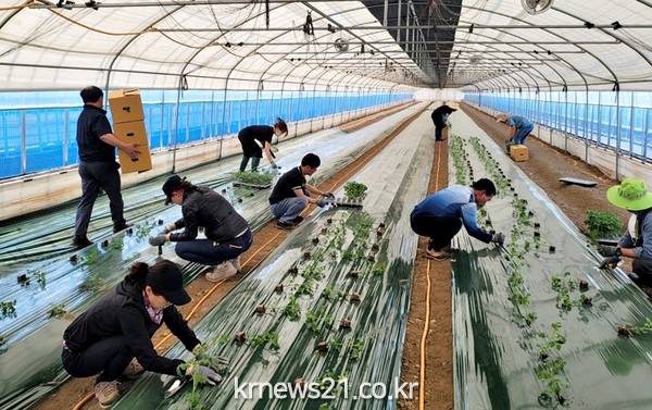 이날 직원들은 하우스 3동에서 토마토 모종 운반 및 정식작업 등을 실시해 일손이 부족한 농가의 시름을 해소하는데 크게 기여하였다.
