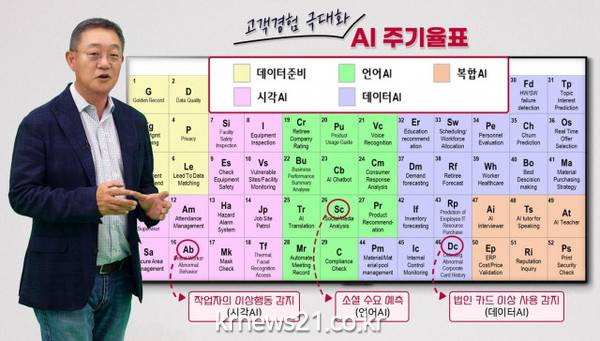 ‘AI 주기율표’에는 △소셜 수요 예측 △작업자 이상행동 감지 △법인카드 이상 사용 감지 △챗봇 △AI 무인시험감독관 등 고객이 적용할 수 있는 다양한 사례를 포함한다.